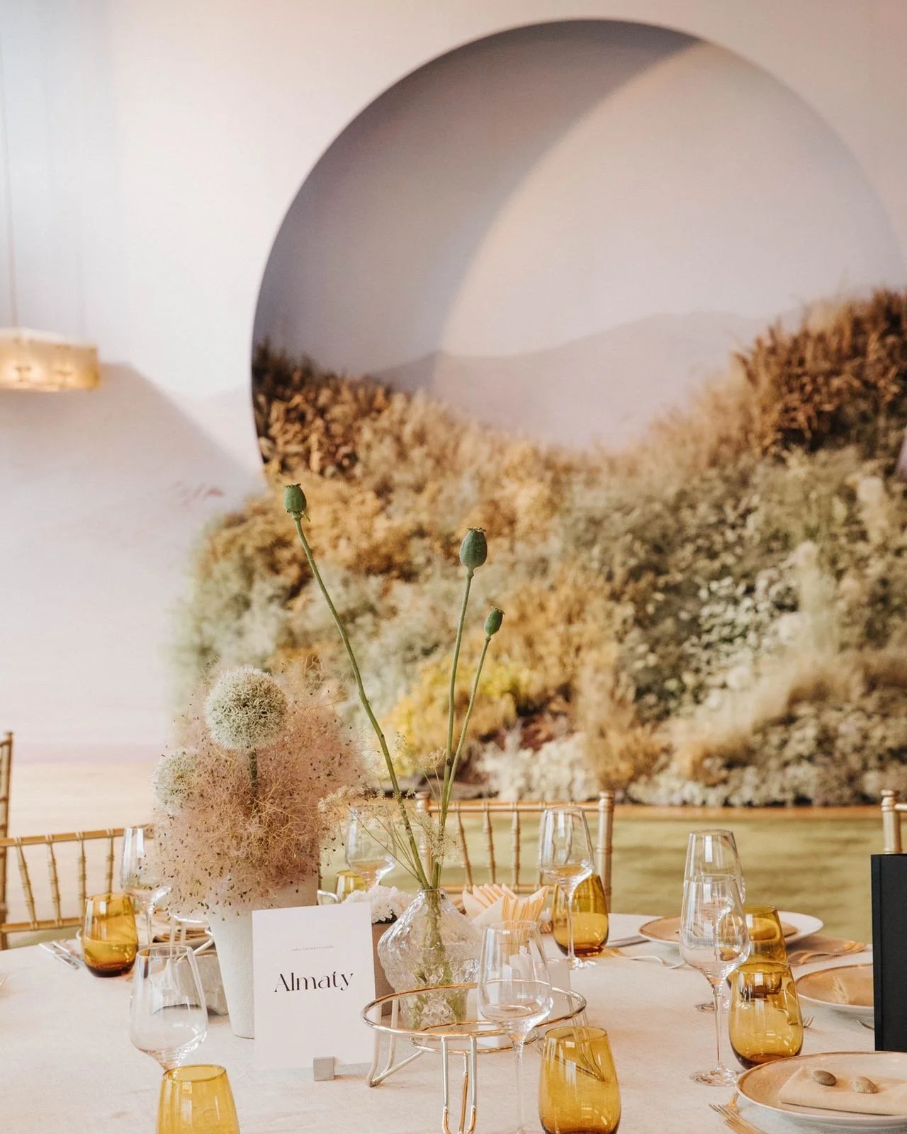 One notable project was a pre-wedding dinner that I produced, which featured an immersive experience that transported international guests to the Kazakh steppe. To achieve this, we utilised a large 6x6 installation made of dried flowers native to the steppe. Executed in collaboration with Faenomen Studio.